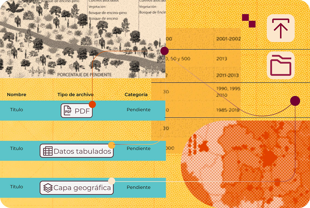 Consulta capas, tablas y documentos que puedes combinar fácilmente para entender patrones espaciales, fenómenos sociales o contextos específicos con la información científica del país.